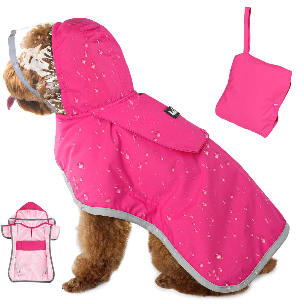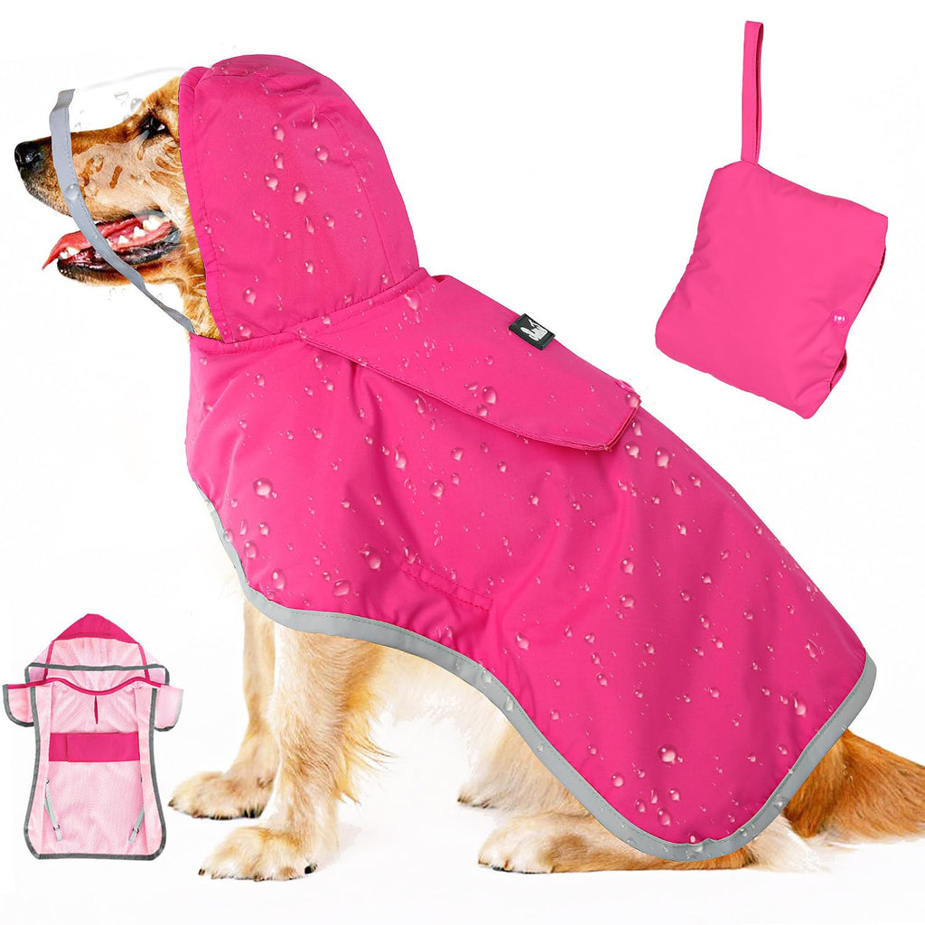 Constructed from 100% waterproof polyester fabric with a soft, breathable mesh lining, this raincoat keeps your dog dry and comfortable in rainy or windy weather. Rainwater slides right off without soaking into the fabric.